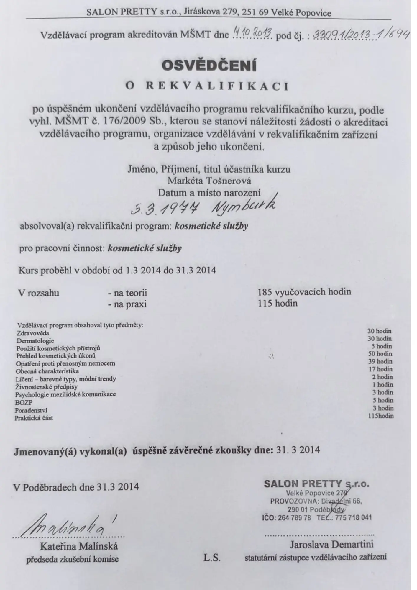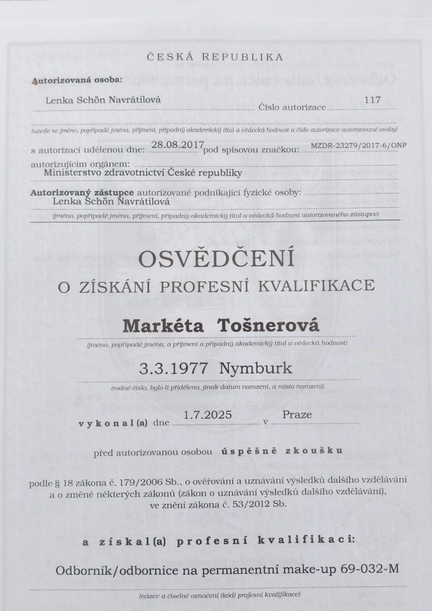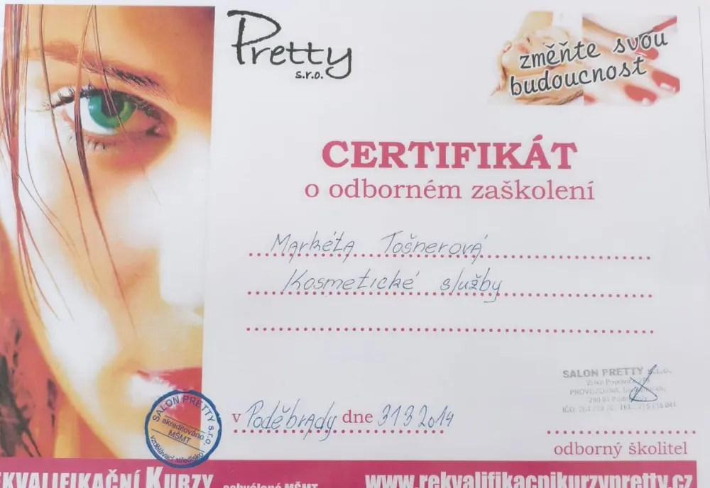 Jmenuji se Markéta a už více než 11 let se pohybuji ve světě krásy a péče o pleť. V průběhu let jsem vybudovala tři úspěšné beauty salóny na různých místech po České republice, kde jsem se postarala o stovky spokojených klientek.